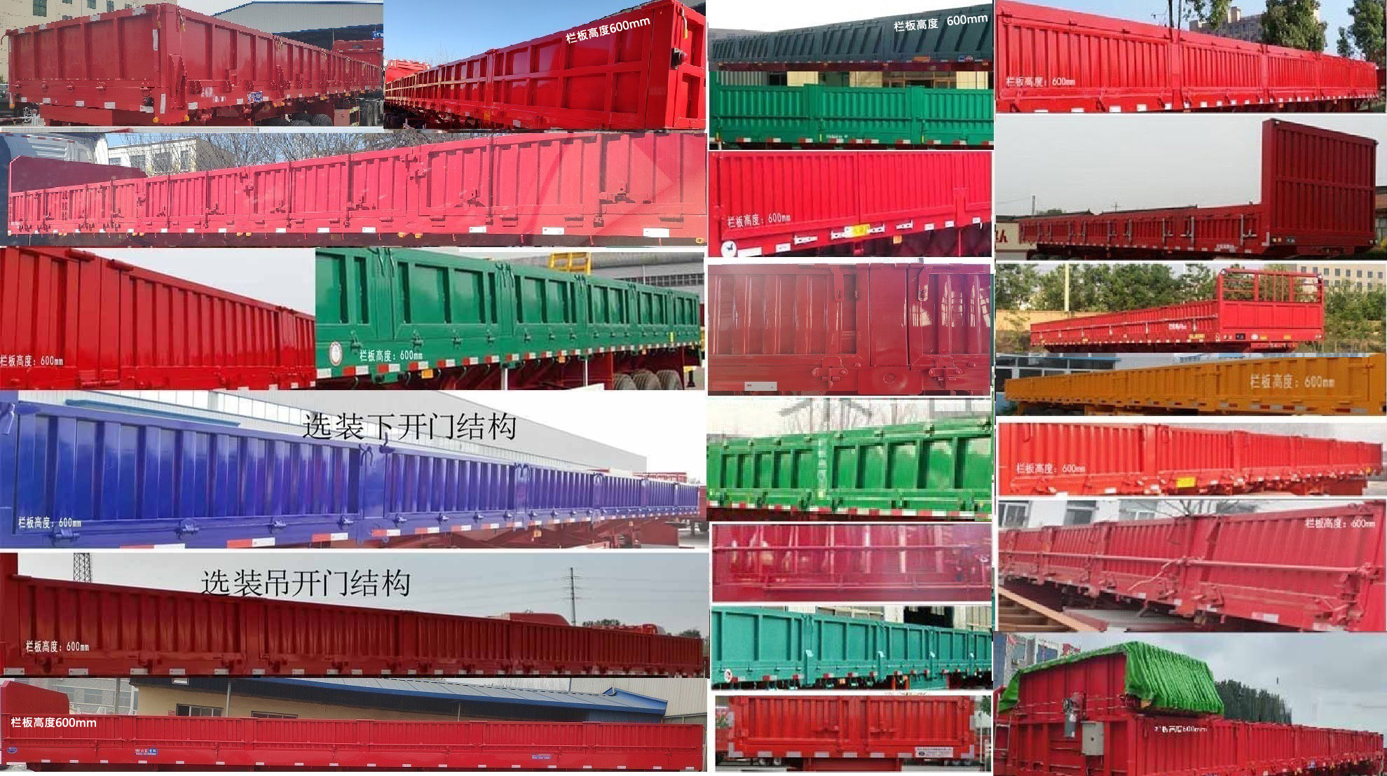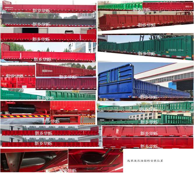 | 备注 | 该车为侧卸,每侧可选4扇门,5扇门,6扇门,选装侧面样式(整车栏板选装竖瓦楞,方管平板,方管十字花样式),选装前档样式,选装后部灯具样式,选装立柱内插或外插.选装号牌板样式,选装吊开门及下开门结构.车长/牵引销至车辆最前端的距离/轴距/后悬尺寸对应关系:13000/1100/6880+1310+1310/2400,13000/1300/6780+1310+1310/2300,13000/1300/6680+1310+1310/2400,12500/1300/6480+1310+1310/2100,12000/1200/6280+1310+1310/1900.ABS:型号:HNABS4S/4M;生产厂家:梁山海纳电子科技发展有限公司,防护材料均采用Q235B,与车辆连接方式为焊接, 后防:离地高度为460mm,断面为140mm×60mm. | ||