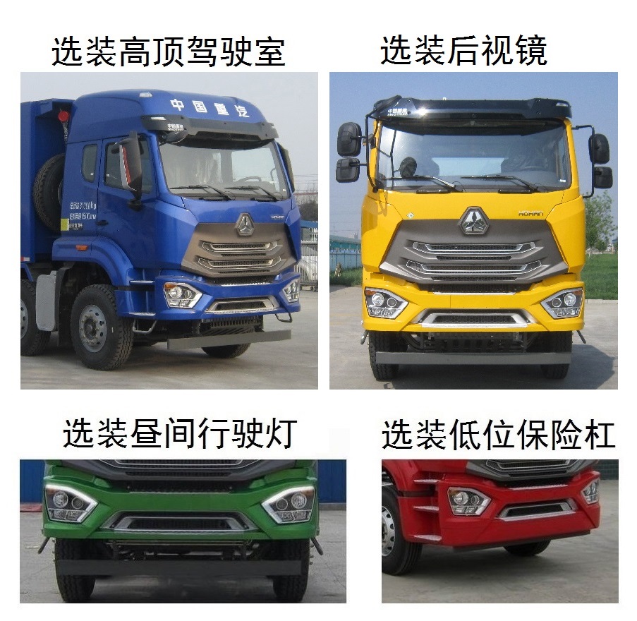 | 备注 | 该车选装半高顶驾驶室时,整车高度为2800mm或3550mm;选装高顶驾驶室时,整车高度为3700mm。该车可选装低位保险杠。选装昼间行驶灯。选装后视镜。车长与轴距、箱长、后悬参数对应关系如下:10410/1800+3800+1350/7600/1910;10410/1800+3775+1400/7600/1885;10610/1800+3800+1350/7800/2110;10610/1800+3775+1400/7800/2085。货箱自卸方式为后卸。该车可选装不同的货箱结构。选装U型箱, U型箱侧裙板为选装件。选装多种环保顶盖结构(包括篷布盖)。货箱上前伸的帽檐可取消。该车装MC09.34-50、MC09.36-50、MC09.38-50、MC09.40-50发动机对应的油耗申报值均为46.0L/100km。侧面防护装置所用材料材质为Q235A,连接方式为螺栓连接;后部防护装置所用材料材质为Q235A,连接方式为螺栓连接+焊接,断面尺寸为120mm×120mm,离地高度为480mm。ABS系统型号为446 004 6300,ABS生产企业为威伯科汽车控制系统(中国)有限公司。安装具有卫星定位功能的行驶记录仪。 | ||