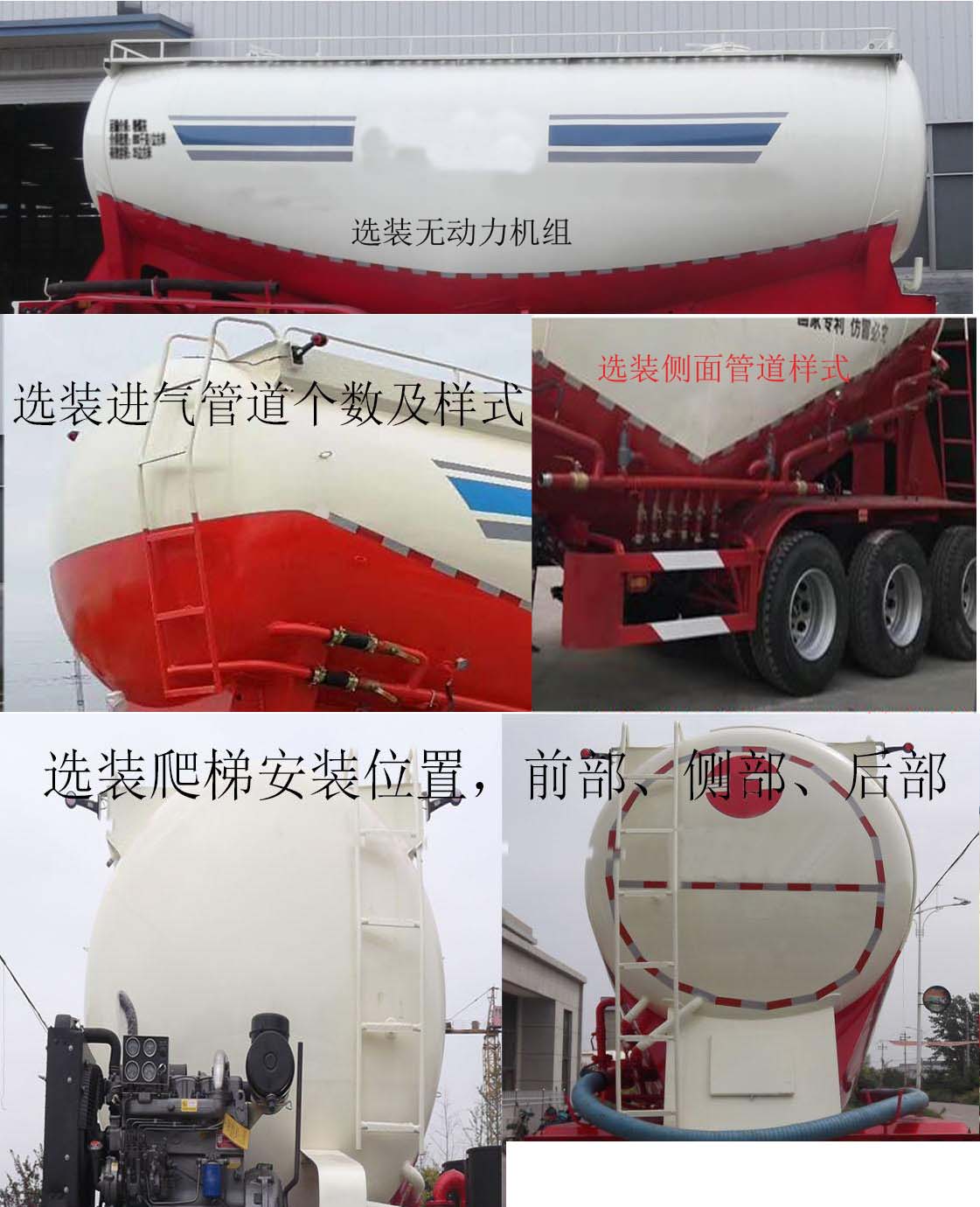 | 备注 | 罐体顶部封闭不可开槽,后部不可开启;有效容积35立方米,罐体素线长度(不含封头,单位:毫米)7640,封头直径为2000,罐体最大截面宽度2550,最大截面高度3190,选装动力机组,无机组时长度为8960毫米,对应整备质量7100千克,选装爬梯样式及位置;选装管路布局结构;选装进气管道;选装侧面管道样式;介质:水泥,密度:950千克/立方米.ABS型号SAD-ABS4S/2M,厂家:梁山顺安达汽车科技有限公司;防护材料为Q235B,侧后防护的连接方式为焊接;后防护的截面尺寸(毫米)为140×50,离地高度460毫米.车辆长/轴距/后悬的对应关系为(毫米):9800/5040+1310+1310/820,8960/4850+1310+1310/1010,9800/4850+1310+1310/1010,8960/5040+1310+1310/820. | ||