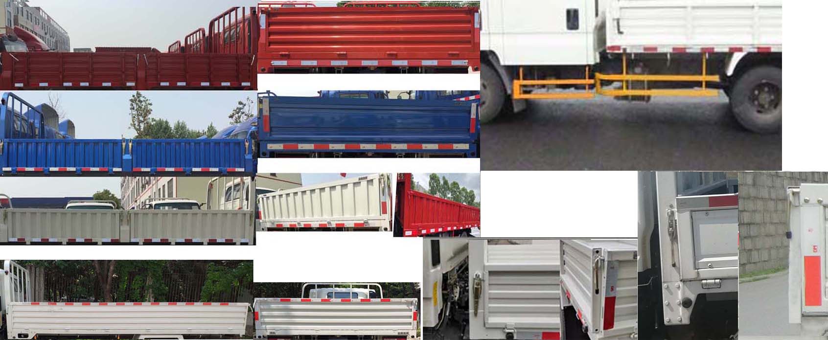 | 备注 | 1、侧面防护装置材料:Q235,连接方式:螺栓连接;后下部防护装置材料:WL440-3.0,连接方式:螺栓连接,断面尺寸:120mm×50mm,离地高度:487mm。2、货厢尾部仅采用一级反光标识粘贴。3、制动系统可选装液压或气压制动形式及制动系统附件,液压制动系统ABS系统型号/生产厂家:APG3550500A/浙江亚太机电股份有限公司;气压制动系统ABS系统型号/生产厂家:VIE ABS-II/浙江万安科技股份有限公司。4、发动机最大净功率:83kw。5、可选装不带前雾灯,选装液压制动不带储气筒。6、选装竹胶板栏板货箱,栏板货厢两侧前后选装新板锁,安装新板锁时可取消原板锁相关周边附件。 | ||