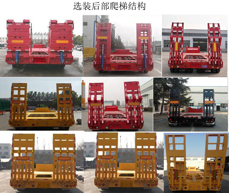 | 备注 | 该车采用刚性悬挂,仅可运输不可拆解物体;鹅颈宽度为1500,1480,1460;货台离地高度可为800mm,850mm,950mm,1000mm,1050mm;当轴距为8160+1220+1220时,后悬为1400mm;当轴距为7960+1220+1220时,后悬为1600mm;当轴距为8400+1220+1220时,后悬为1160mm;当轴距为8700+1220+1220时,后悬为860mm;尾部爬梯及支架收起状态超出车架的水平长度不超过300mm,该长度不在车辆长度测量范围内;选装车辆大鹅颈处结构,选装车辆凹心结构,选装支腿内置和前脖倒角;车辆爬梯为选装件,可以安装也可不安装;车辆鹅颈部位不可承载货物货台;因选装引起的质量变化在3%内;ABS系统厂家为广州市西合汽车电子装备有限公司,广州瑞立科密汽车电子股份有限公司,对应型号为XH-GQ4S2M-E01,CM2XL-4S/2M;侧防护装置采用Q235,连接方式为螺栓连接,后部车身结构替代后防护栏,材料为Q235,与车架焊接,离地高度可为350mm或400mm。 | ||