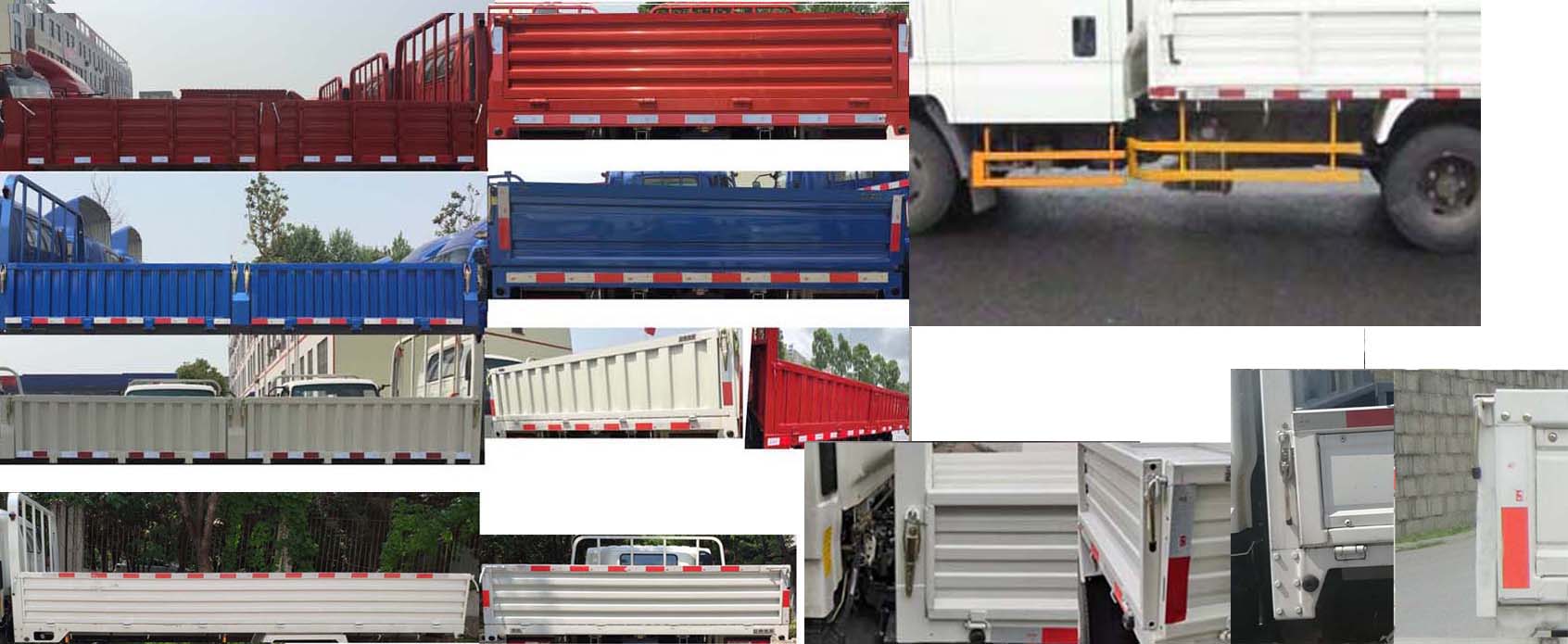 | 备注 | 1、侧面防护装置材料:Q235,连接方式:螺栓连接;后下部防护装置材料:WL440-3.0,连接方式:螺栓连接,断面尺寸:120mm×50mm,离地高度:487mm。2、货厢尾部仅采用一级反光标识粘贴。3、制动系统可选装液压或气压制动形式及制动系统附件,液压制动系统ABS系统型号/生产厂家:APG3550500A/浙江亚太机电股份有限公司;气压制动系统ABS系统型号/生产厂家:VIE ABS-II/浙江万安科技股份有限公司。4、发动机最大净功率:83kw。5、可选装不带前雾灯,选装液压制动不带储气筒。6、选装竹胶板栏板货箱,栏板货厢两侧前后选装新板锁,安装新板锁时可取消原板锁相关周边附件。 | ||