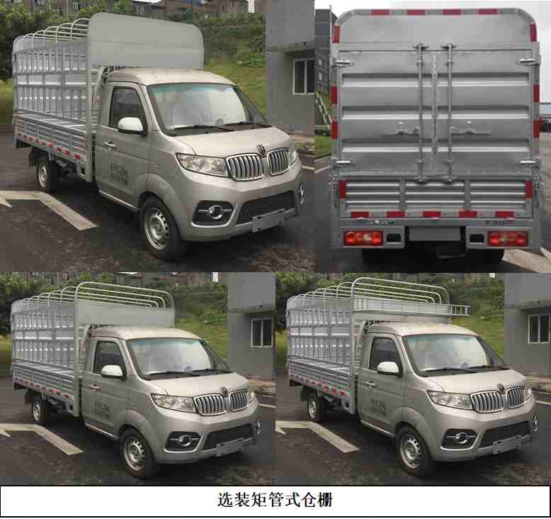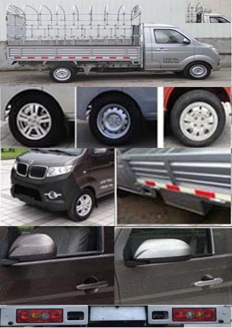 | 备注 | 选装前雾灯(有/无);选装钢/铝车轮;选装车轮毂罩;可装同色/不同色前后保险杠;可装同色/不同色门外拉手;可装同色/不同色后视镜;选装不同型式货箱箱体;选装前探头;选装侧面可上下开启式货箱;选装工具箱; 选装倒车雷达、倒车影像,选装矩管式仓栅;选装矩管式仓栅时,整车整备质量为1330kg,额定载质量为760kg,外形尺寸为4930×1820,1720×2610(mm);车厢地板到顶部高度为1760mm。发动机最大净功率为75kW,发动机额定功率为80kW。带OBD。ABS系统控制器型号:APG3550500G,生产企业: 浙江亚太机电股份有限公司。DLCG14发动机油耗申报值为7.1L/100km。 | ||