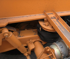 | 备注 | 该车为30英尺集装箱运输半挂车。牵引销处车架总高度90毫米。牵引销处至车辆最前端920毫米对应轴距4800+1310+1310后悬1240毫米,牵引销处至车辆最前端620毫米对应轴距4500+1310+1310后悬870毫米。装瀚德汽车产品(苏州)有限公司ABS系统,ABS系统控制器型号为364 279 202。侧防护材料Q235,螺栓联接;后下部防护材料Q235截面尺寸槽形150×70毫米,与大梁焊接,距离地面高度530毫米。选装钢制或塑胶挡泥板。选装尾部结构。选装空气弹簧悬挂。 | ||