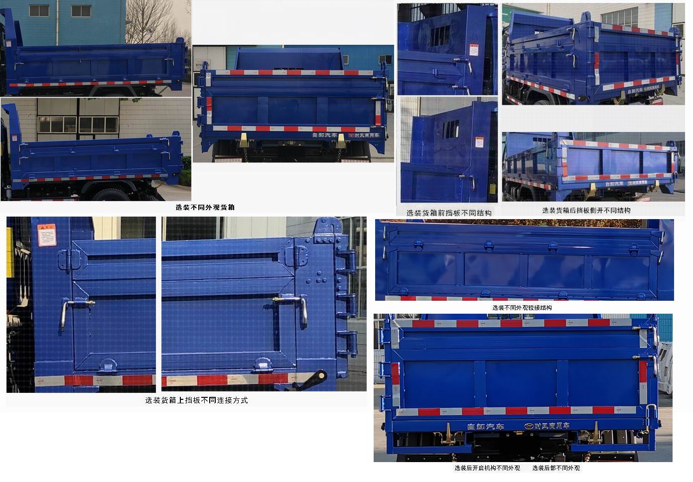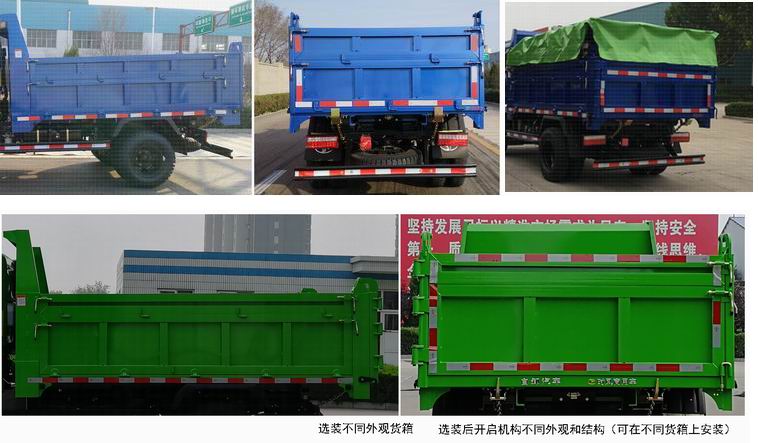 | 备注 | 后卸;防护装置材质为Q235,采用螺栓连接方式;后下部防护装置截面高×宽为30×130,离地高度为380mm;ABS系统型号/厂家: XN-3730601/济南鑫宁汽车配件有限公司,CM4XL-4S/4M/广州瑞立科密汽车电子股份有限公司,YF8/武汉元丰汽车电控系统有限公司;尺寸对应关系:外形尺寸5505×2075×2370对应货箱内部尺寸3190×1870×650和3190×1870×450,外形尺寸5505×1975×2370对应货箱内部尺寸3190×1870×650、3190×1870×750和3190×1870×450,外形尺寸5505×1975×2370对应货箱内部尺寸3190×1770×650和3190×1770×450,轴距2820后悬1500,轴距2910后悬1410,轴距3000后悬1320; 外形尺寸5450×2075×2370和5450×2075×2220均可对应货箱内部尺寸3190×1870×650、3190×1870×750和3190×1870×450,外形尺寸5450×1975×2370和5450×1975×2220均可对应货箱内部尺寸3190×1870×650、3190×1870×750和3190×1870×450,外形尺寸5450×1975×2370和5450×1975×2220均可对应货箱内部尺寸3190×1770×650和3190×1770×450,轴距2820后悬1445,2910后悬1355,轴距3000后悬1265;外形尺寸5415×2075×2370和5415×1975×2370均可对应货箱内部尺寸3100×1870×650、3100×1870×450、3100×1870×690、3100×1870×490、3100×1870×600和3100×1870×750,外形尺寸5415×1975×2370对应货箱内部尺寸3100×1770×650、3100×1770×450、3100×1770×690、3100×1770×490、3100×1770×600和3100×1770×750,轴距2820后悬1410,轴距2910后悬1320,轴距3000后悬1230; 外形尺寸5360×2075×2370、5360×1975×2370、5360×2075×2220和5360×1975×2220均可对应货箱内部尺寸3100×1870×650、3100×1870×450、3100×1870×690、3100×1870×490、3100×1870×600、3100×1870×750,外形尺寸5360×1975×2370和5360×1975×2220均可对应货箱内部尺寸3100×1770×650、3100×1770×450、3100×1770×690、3100×1770×490、3100×1770×600、3100×1770×750,轴距2820后悬1355,轴距2910后悬1265,轴距3000后悬1175;外形尺寸5345×1975×2370对应货箱内部尺寸3030×1870×650、3030×1870×450、3030×1770×650和3030×1770×450, 轴距2820后悬1340, ,轴距2910后悬1250; 外形尺寸5240×1975×2370和5240×1975×2220均可对应货箱内部尺寸3030×1870×650、3030×1870×450、3030×1770×650和3030×1770×450, 轴距2820后悬1235 ,轴距2910后悬1145;单位mm;4DW93-84E5、WP2.1Q110E50、YN33CRE1、4B2-95C50、4DW94-95E5、YCD4N4S-110、YN27CRE10和CA4DB1-13E5发动机对应的油耗值分别是14.6、14.4、14.8、14.6、14.8、14.6、14.5和14.7L/100km;选装不同外观的货箱;选装前围和前部灯具;选装视镜不同安装位置,选装遮阳罩,选装货箱前挡板不同结构 | ||