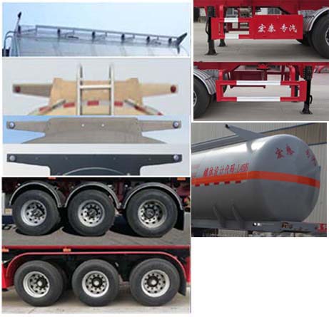 | 备注 | 罐体有效容积41.2立方米.危险品类项号:3.罐体尺寸为:前端(长×直径)(mm):3200×2190,后端(长×直径)(mm):8100×2390.选装空气悬挂结构.选装挡泥板样式.选装罐顶示廓灯架及带活动护栏样式.选装灭火器不同的安装位置.选装侧防护有无工具箱样式.其中整备质量中8500kg为选装备案参数中轻型行走结构,对应额定载质量为31500kg.选装封头样式.选装罐顶结构及罐口数量样式.选装工具箱及阀门箱暗锁样式.ABS系统控制器厂家:广州瑞立科密汽车电子股份有限公司,型号:CM2XL-4S/2M.选装ABS系统控制器厂家:威伯科汽车控制系统(中国)有限公司,型号:4005000880.侧防护材质为Q235,和车辆螺栓连接,后防护材质为Q345B,和车辆螺栓连接截面为140×60(mm),离地高度为500mm.车辆后部安装尾部标志板.采用适用于牵引危险品运输半挂车的牵引车.危险货物运输车辆的车辆类型为FL型车辆. | ||