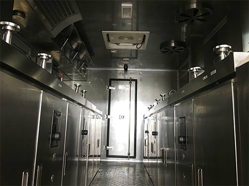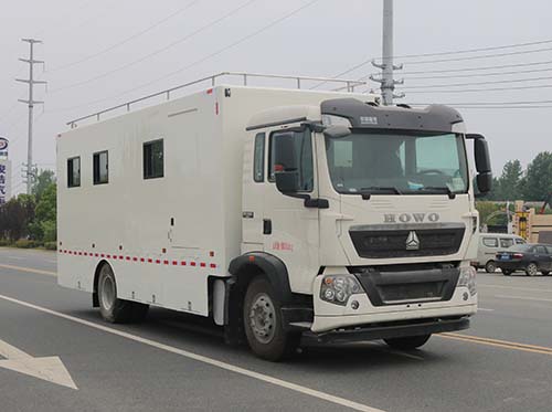 | 备注 | 1.车厢顶部封闭不可开启;2.厢内内部设备为发电机,蒸饭柜,冰柜,消毒柜,冷饮机,炊具等;3.侧防护和后防护装置均为裙边结构,后部下沿离地高500mm;4.随底盘选装驾驶室,翼子板,导流罩和侧导风板;5.ABS系统型号为4460046300,生产企业为威伯科汽车控制系统(中国)有限公司;6.整车长度与轴距的对应关系为(mm):8575/4500,8775/4700,9075/5000. | ||