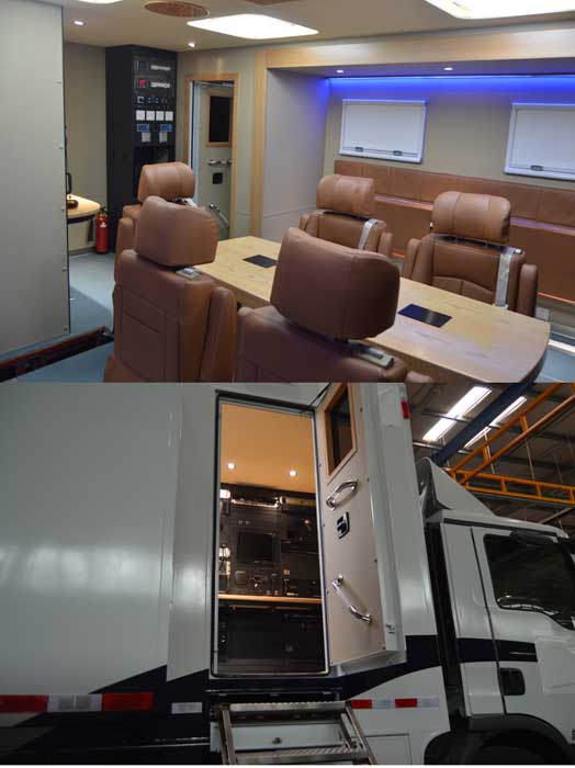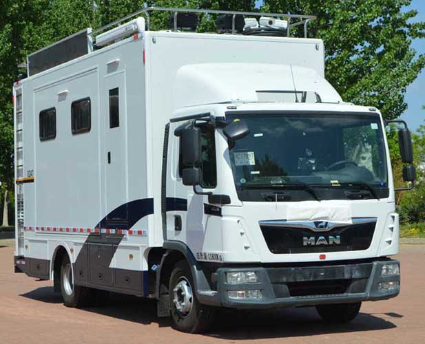 | 备注 | 顶部封闭,不可开启;该车应在侧面和后部安装车身反光标识;该车侧防护为裙边结构,后防护最下部离地高度为400mm. 材料为Q235A,结构为2300mm×60mm×120mm;升降照明灯高为3935mm,LED屏高为3915mm,护栏高为3810mm.ABS型号:480020XXX0 ,生产厂:WABCO;专用装置:指挥控制系统、传输系统、机柜等;发动机最大净功率为184kw; | ||