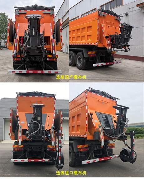 | 备注 | 专用装置:撒布机总成;该车型主要用于公路、城市道路、广场、机场、码头等混凝土路面和沥青路面的机械化除雪作业;该车侧、后防护装置是由Q235A钢板加工而成,通过高强度螺栓与车架连接,侧防护采用横杆结构,左右对称,横杆截面高为120mm,横杆间距为100mm,离地高度为480mm,后下部防护装置的截面尺寸(长×宽×高):2400mm×120mm×120mm,离地高度为440mm;仅用轴距(mm):4325+1350;发动机MC11.36-60、MC09.35-60、MC09.38-60、MC09.35B-60、WP10H400E62、MC11.40-60、MC11.44-60净功率分别为265kW、257kW、276kW、257kW、289kW、294kW、324Kw;发动机MC09.35-60,MC09.38-60对应油耗值为37.0L/100km,发动机MC09.35B-60对应油耗值为37.1L/100km,发动机WP10H400E62对应油耗值为37.2L/100km,发动机MC11.36-60,MC11.40-60,MC11.44-60对应油耗值为37.3L/100km;ABS系统控制器生产企业/型号为威伯科(上海)管理有限公司/4460046300;安装有卫星定位功能的行驶记录仪;前伸为175mm,长、高、后伸、整备质量对应关系分别为:10210mm,3995mm,1200mm,19150kg(选装进口撒布机,装驾驶室后部液压系统)/10210mm,3995mm,1200mm,185000kg(选装进口撒布机,不装驾驶室后部液压系统)/10410mm,3755mm,1400mm,19080kg(选装国产撒布机,装驾驶室后部液压系统). | ||