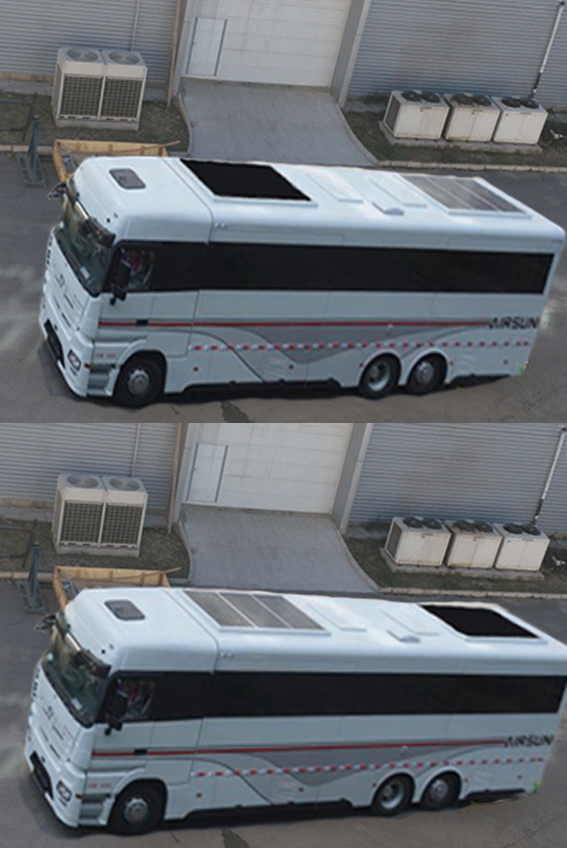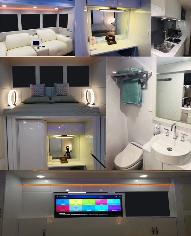 | 备注 | 顶部封闭,不可开启。车身选装玻璃外装饰、车门、百叶窗、侧拉箱的数量和安装位置。车顶选装空调机、太阳能板、玻璃天窗的形状数量及安装位置。内部选装厨具等生活用品。该车行驶过程中,后厢内不坐人。该车装有ABS,ABS型号ESP8.1,厂家BOSCH。轮胎型号层级为:295/80R22.5 18PR。由于侧面与后面下仓装有专用设备,所以强度测试为豁免。车身侧下檐离地高340mm,后下檐离地高490mm。第三轴为随动轴,不可提升。 | ||