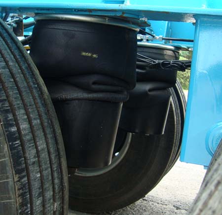 | 备注 | 该车主要用于运输20英尺危险品罐箱或普通罐箱,也可运输20英尺集装箱.车辆装运的危险品类别为:非剧毒化学品及爆炸品,牵引销处车架总高度90mm,工具箱位置可选装车辆左侧,选装空气悬挂,选装轮胎罩样式;浙江万安科技股份有限公司生产的ABS控制器型号为VIE-TABS II(4S/2M);侧防护材料Q235,为螺栓连接;后防护材料Q235,为焊接式,断面尺寸150×50mm,离地高度500mm.采用危险品牵引车运输.车身加装灭火器及导静电橡胶拖地带. | ||