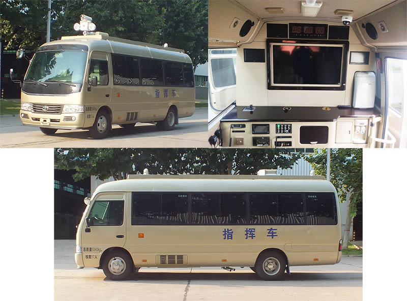| 备注 | 该车配备警报器,集中控制柜,集中控制系统,4G硬盘录像机,监控显示器,云台摄像头,室内半球摄像头等具有图像信息采集、传输、储存功能的专用装置主要用于公安,应急管理、交通、现场调度指挥等.选装隔断墙.选装取消折杆灯,取消八角音柱;取消折杆灯时车高2993mm;同时取消折杆灯和八角音柱时整备质量为4145kg.10-12席对应整备质量为3465kg,13-15席对应整备质量为3680kg,16-17席对应整备质量为3905kg.ABS系统型号/生产厂家为:89540-36091/DENSO CORPORATION.发动机最大净功率为171kW. | ||