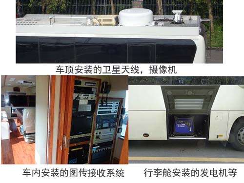 | 备注 | 主要专用装置:卫星天线,摄像机,图传接收系统,发电机;随底盘选装中开门,外推式应急窗;随底盘装ABS系统:型号/厂家:①.ABS-E 4S/4M/威伯科汽车控制系统(中国)有限公司, ②.ABS 8/克诺尔商用车系统企业管理(上海)有限公司;发动机最大净功率:176kW(WP6.245E50),171kW(YC6J245-58),194kW(YC6A270-50),175kW(YC6J245-52),194kW(WP7.270E53);车辆前部核定驾驶座1人,内部其它座椅行驶中均不能载客. | ||