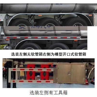 备注 | 采用适用于牵引危险品运输半挂车的牵引车.罐体有效容积:42立方米.罐体为鹅颈式结构:罐体外形尺寸mm:总长11200,最大宽度2500,后端高度2160,前端高度1960,罐体保温厚度50mm,内罐尺寸:总长11100,最大宽度2400,后端高度2060,前端高度1860,选装空气悬架,选装挡泥板样式,选装前部无爬梯,罐顶折叠扶手,选装左右两侧软管箱为圆筒式,选装左侧有工具箱,类项号:3.车辆类型:FL型车辆.ABS生产厂家: 威伯科汽车控制系统(中国)有限公司,广州瑞立科密汽车电子股份有限公司;ABS型号:400500XXX0,CM2XL-4S/2M.侧后防护栏材料为铝合金,与车架螺栓连接,后防护栏断面尺寸为140×50mm,选装150X80mm,离地高度为480mm。 |
