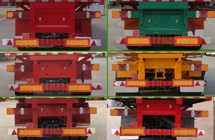 备注 | 该车自卸方式为:侧卸,选装前挡板样式,选装吊开门和下开门,选装局部合页样式,选装侧面样式,侧面栏板可选装竖瓦楞,方管平板,镀锌板,方管十字花样式;选装后部样式,选装号牌板样式,半挂车牵引销至车辆最前端的距离/车长/轴距/后悬对应关系(mm):1300/13000/6780+1310+1310/2300;1400/13000/6680+1310+1310/2300;1300/12500/6480+1310+1310/2100;1300/12000/6180+1310+1310/1900;一,ABS:型号:HNABS4S/4M;生产厂家:梁山海纳电子科技发展有限公司。二,防护:防护材料均采用Q235B,与车辆连接方式为焊接. 后防:离地高度为550mm,断面为140mmX50mm |