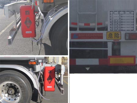 备注 | 罐体外形尺寸:罐体长10.5米,长轴2.49米,短轴1.96米.罐体有效容积为43立方米.运输介质:汽油,危险货物运输车辆的车辆类型FL.危险品类项号:3,密度:0.73吨/立方米.选装空气悬挂.侧后防护材质均为碳钢,均为螺栓连接.后防护的横向构件截面(高x宽)120x60毫米.下平面距地高500毫米.ABS型号/厂家:CM2XL-4S/2M,400500XXX0/广州瑞立科密汽车电子股份 有限公司,威伯科汽车控制系统(中国)有限公司.采用危险品运输半挂牵引车牵引.选装罐顶防护栏、车后左右两侧箱子、车后安全告示牌安装位置、灭火器箱结构和安装位置.该车用于危险品运输 |