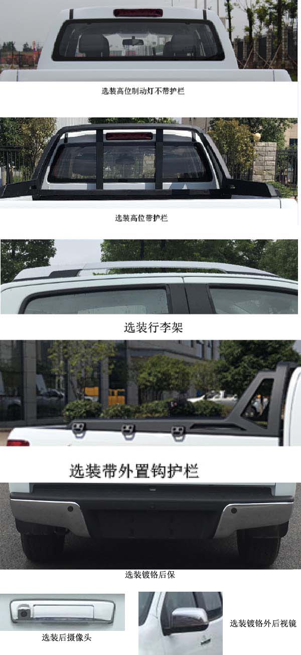 | 备注 | 1.发动机RZ4E最大净功率为120KW,油耗申报值为8.2L/100km;2.ABS系统型号/生产厂家:V3G-N/爱德克斯(广州)汽车零部件有限公司;3.选装行李架、选装高位制动灯不带护栏、选装高位制动灯带护栏、选装带外置钩货箱护栏、选装后摄像头、选装镀铬后保、选装镀铬外后视镜。 | ||