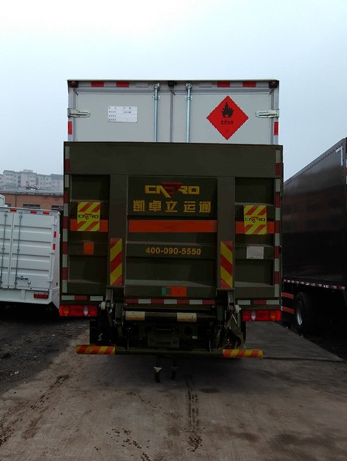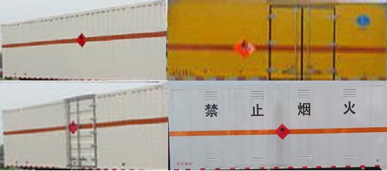 | 备注 | 选装导流罩,随底盘选装驾驶室卧铺侧窗装饰板,前围扰流罩,前雾灯。仅用底盘5000,4700mm轴距,10.00R20,9.00R20,275/80R22.5轮胎。防护装置:材料Q235,螺栓连接;后下部防护装置:断面尺寸120×60mm,离地高度460mm。安装具有卫星定位功能的行驶记录仪。装有ABS,型号:3631010-C2000,4460046440;生产厂家:东科克诺尔商用车制动系统(十堰)有限公司,威伯科汽车控制系统(中国)有限公司。厢体顶部封闭,不可开启。厢体选装通风窗。选装液压尾板。排气管前置,装盘式制动器,装限速装置,限速80km/h。该车用于运输具有独立容器(瓶)包装的:粘合剂,涂料,涂料溶液,煤油,苯,甲醇,乙醇,丙酮,甲苯,二甲苯,汽油,类项号:3。箱体选装瓦楞和平板结构, 箱体侧面选装开门和不开门,箱体颜色可选。尾板收起状态的水平长度为300mm。 | ||