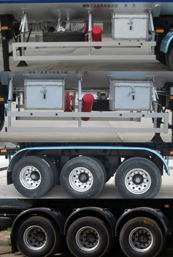 | 备注 | 所装介质为液化石油气,类项:2.1充装系数为420千克/立方米,有效容积为56立方米,罐体尺寸:罐体直径为2450毫米,罐体直筒长度为10286毫米,罐体总长12718毫米,ABS型号为G ECU,CM2XL-4S/2M,生产厂为焦作博瑞克控制技术有限公司;广州瑞立科密汽车电子股份有限公司.侧面和后下部防护材质为Q235-A;以焊接的形式与车梁连接,后下部防护装置截面高120毫米,宽48毫米,下边缘离地最大高度530毫米,侧防护选装铝合金6063材质的;后下部防护装置选装截面尺寸:100×20,下边缘离地最大高度510毫米;用螺栓连接方式与车梁连接;选装不锈钢箱子;人孔选装在罐体上部。前位灯、前反射器安装形式选装;选装挡泥板。采用适用于牵引危险品半挂车的牵引车 | ||