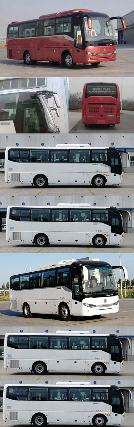 | 备注 | 1.可选装或取消中置门车身结构,选装中门时额定载客为24-38个;2.可选装或取消空调,取消空调时整车高度为3280mm;3.可选装不同型式的侧窗,乘客门窗选装推拉,可选装乘客门下小玻璃;4.选装不同形式的后视镜;5.可选装或取消两侧飘带;6.可选装不同数量的侧舱门,侧舱门可为平移式或上翻式;7.选装不同型式的外翻窗;8.选装不同型式的舱门锁;9.选装低配时,整备质量为9550kg,选装高配时,整备质量为9930kg;整备质量为9930kg时,额定载客为24-38人;10.当车身右侧为单门时,左侧应安装应急门;11.后围舱门选装或取消散热孔;12.油箱门上可选装或取消加油口;13.选装局部造型及灯具;14.选装路牌;15.防抱死制动系统型号/生产企业:CM4XL-4S/4M/广州瑞立科密汽车电子股份有限公司或ABS 8/克诺尔商用车系统企业管理(上海)有限公司;16.最大净功率:171kW(YC6J245-50),176kW(WP6.245E50),171kW(YC6J245-58),194kW(YC6A270-50),194kW(WP7.270E53);17.油耗申报值:20.0L/100km(YC6J245-50),19.8L/100km(WP6.245E50),19.6L/100km(YC6J245-58),20.0L/100km(YC6A270-50),19.9L/100km(WP7.270E53);18.该车安装具有卫星定位功能的行驶记录仪。 | ||