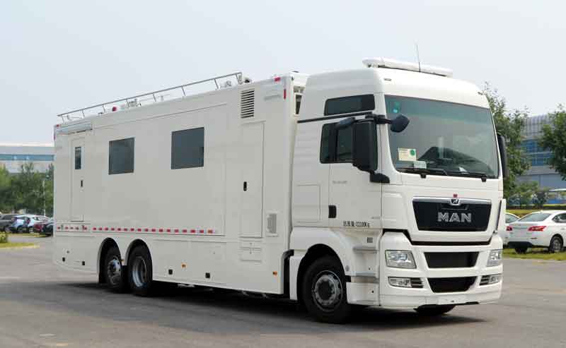 | 备注 | 顶部封闭,不可开启;该车应在侧面和后部安装车身反光标识;侧防护为裙边结构,侧防护离地高280mm,后防护离地高度为400mm. ABS型号:0 486 106,生产厂:KNORR;专用装置:升降照明系统,摄像系统,发电机,UPS,电气控制系统等,用于指挥现场作业,发动机最大净功率为353kw. | ||