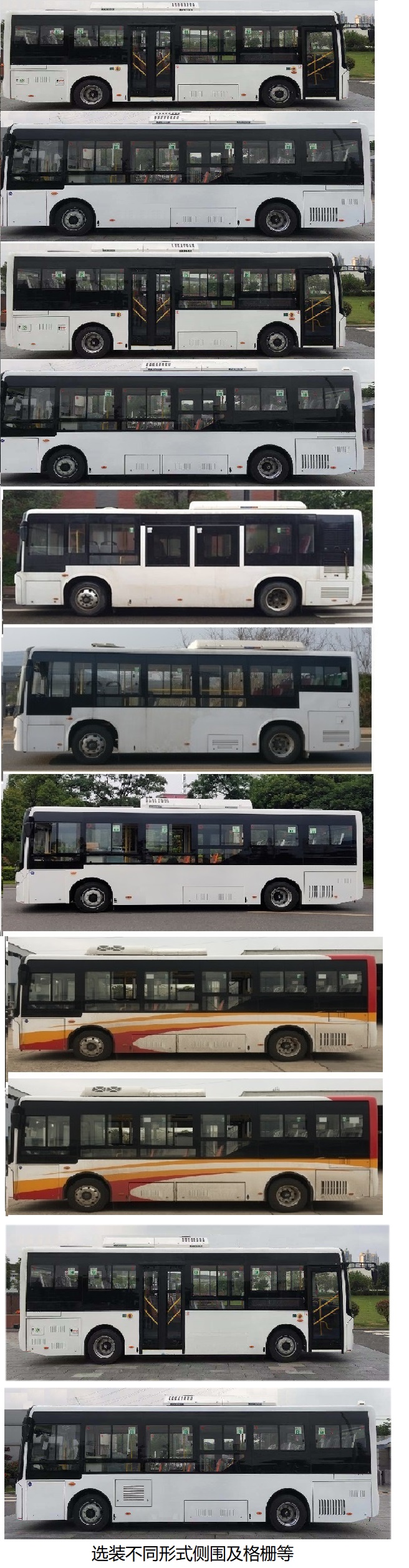 | 备注 | 1.该车可选装不同形式的前照灯,可选装外推式应急窗或推拉式应急窗,可选装其他型式后围格栅,可选装其他型式舱门及格栅,可选装不同形式的车外后视镜;2.选装汉德车桥时对应车宽为2450mm,选装免维护轮毂时对应车宽为2500mm,选装其它车桥时对应车宽为2400mm;3.可选装空调,选装空调时整车高度为3150mm或3200mm.整备质量为8350kg时核载人数为60/15-31或64/15-29或70/15-25,整备质量为8050kg时核载人数为60/15-31或64/15-29或70/15-25,整备质量为7750kg时核载人数为60/15-31或64/15-29或70/15-25;4.电池类型/生产企业:磷酸铁锂蓄电池/宁德时代新能源科技股份有限公司;5.电机额定/峰值功率(kW):165/240;6.ABS型号及生产企业:ABS-E 4S/4M/威伯科汽车控制系统(中国)有限公司,CM4XL-4S/4M/广州市瑞立科密汽车电子股份有限公司;7.该车安装带有卫星定位功能的行驶记录仪;8.该车为整车控制器限速,限速69km/h;9.该车可选装燃油加热器,燃料种类为柴油;10.该车型使用的245/70R19.5型轮胎为16层级时负荷指数为141/140(双钱、佳通),轮胎为18层级时负荷指数为141/140(万力、中策),143/142(韩泰). | ||