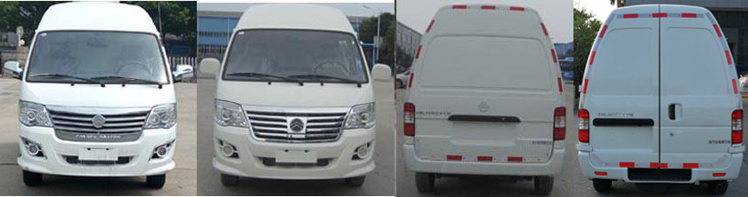 | 备注 | 1.顶盖可选装高顶(车高2260mm),中顶(车高2066mm),平顶(车高1980mm);2.后部为盲窗;中间有隔断;3.可选装不同形式隔断;选装另一款后视镜;选装另一款后保险杠;选装取消前雾灯;4.带OBD;5.可选装单排或双排的驾驶室及侧窗结构;选装2座椅布置时,额定载质量为720kg;选装2+2座椅布置时,额定载质量为590kg;选装2+3座椅布置时,额定载质量为525kg;6.选装第二款前格栅;7.该车装ABS系统控制器的型号/生产企业:YF8/武汉元丰汽车电控系统有限公司;8.发动机最大净功率为92kW,油耗申报值:8.6(L/100km). | ||
