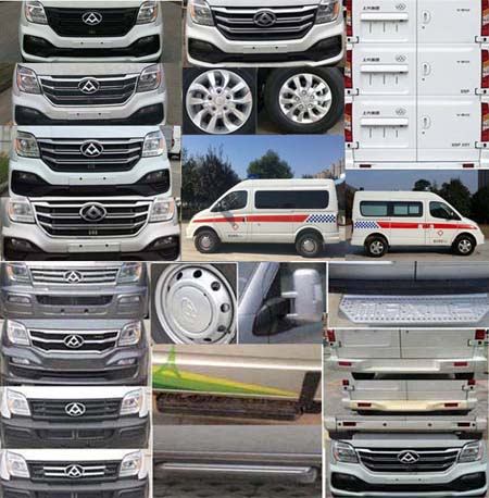 | 备注 | 1.车内设置有医疗器械柜,救护用仪器设备,供氧系统,担架等;2.ABS生产企业:博世汽车部件(苏州)有限公司,博世汽车部件(苏州)有限公司,ABS型号:ABS 9.0,ESP9;3.发动机最大净功率:97.5kW.4.可选装另一款长排警灯和车顶两侧蓝色警示灯及白色外场照明灯;车顶靠后部可不装圆柱警示灯.5.在保证车辆外部警灯警示功能的情况下,可去掉车顶左右两侧警示灯和外场照明灯.6.随底盘车选装新外观,侧踏步,牌照装饰板,钢轮圈,不镀铬水箱面罩,前围;可不装前雾灯. | ||