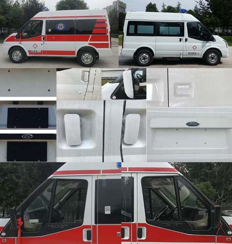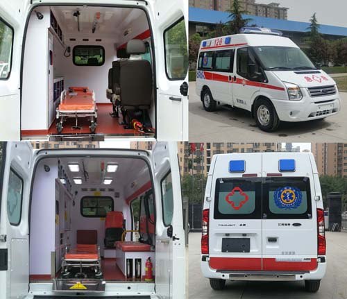 | 备注 | 1.车外安装警示灯,外场照明灯,车内设置有医疗器械柜,救护用仪器设备,供氧系统,担架等专用装置,车辆用途为院前急救;2.救护车医疗舱内因医疗器械柜及座椅位置,数量的不同加上驾驶员座椅和副驾座椅,救护车额定载客分别核定为6人(对应整备质量为2480kg),7人(多个医疗柜对应整备质量为2450kg,少量医疗柜对应整备质量为2390kg,),8人(对应整备质量为2330kg);3.选装另一款长排警示灯和车顶周围选装正方形警示灯及外场照明灯时救护车高度为2520mm,随底盘车选装另一款前大灯;4.在保证车辆外部警灯警示功能的情况下,两个高度的救护车均可去掉车顶左右两侧蓝色警示灯和白色外场照明灯;5.随底盘车选装号牌板支架,车门两侧选装带英文装饰条,尾部选装外部标识,选装车身同色后视镜,车身同色门把手及钥匙孔;6.ABS系统控制器型号: 6C11 2M110 A*或CC11 2C405 A*,生产厂家:博世汽车部件(苏州)有限公司.发动机最大净功率101kw. | ||