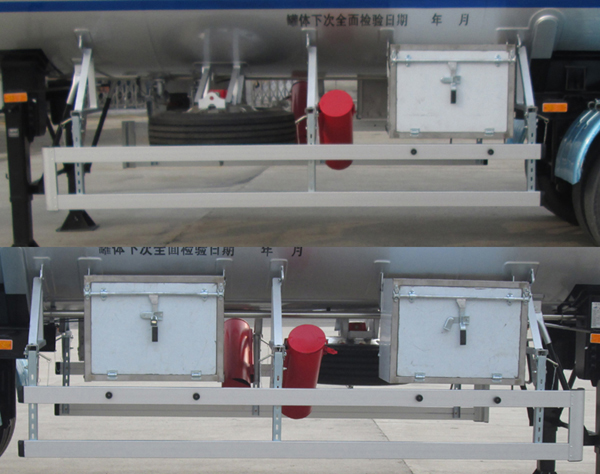 | 备注 | 所装介质为液化石油气,类项2.1,充装系数为420千克/立方米,有效容积为57.6立方米,罐体尺寸(mm):总长12828,直径2476,侧面和后下部防护材质为Q235-A;用螺栓连接方式与车梁连接,后下部防护装置截面尺寸:100×20,下边缘离地高度510;侧防护选装铝合金材质的,ABS型号为 G ECU 生产厂为 焦作博瑞克控制技术有限公司。选装挡泥板和工具箱,选装人孔在罐体上部。采用适用于牵引危险品半挂车的牵引车。 | ||