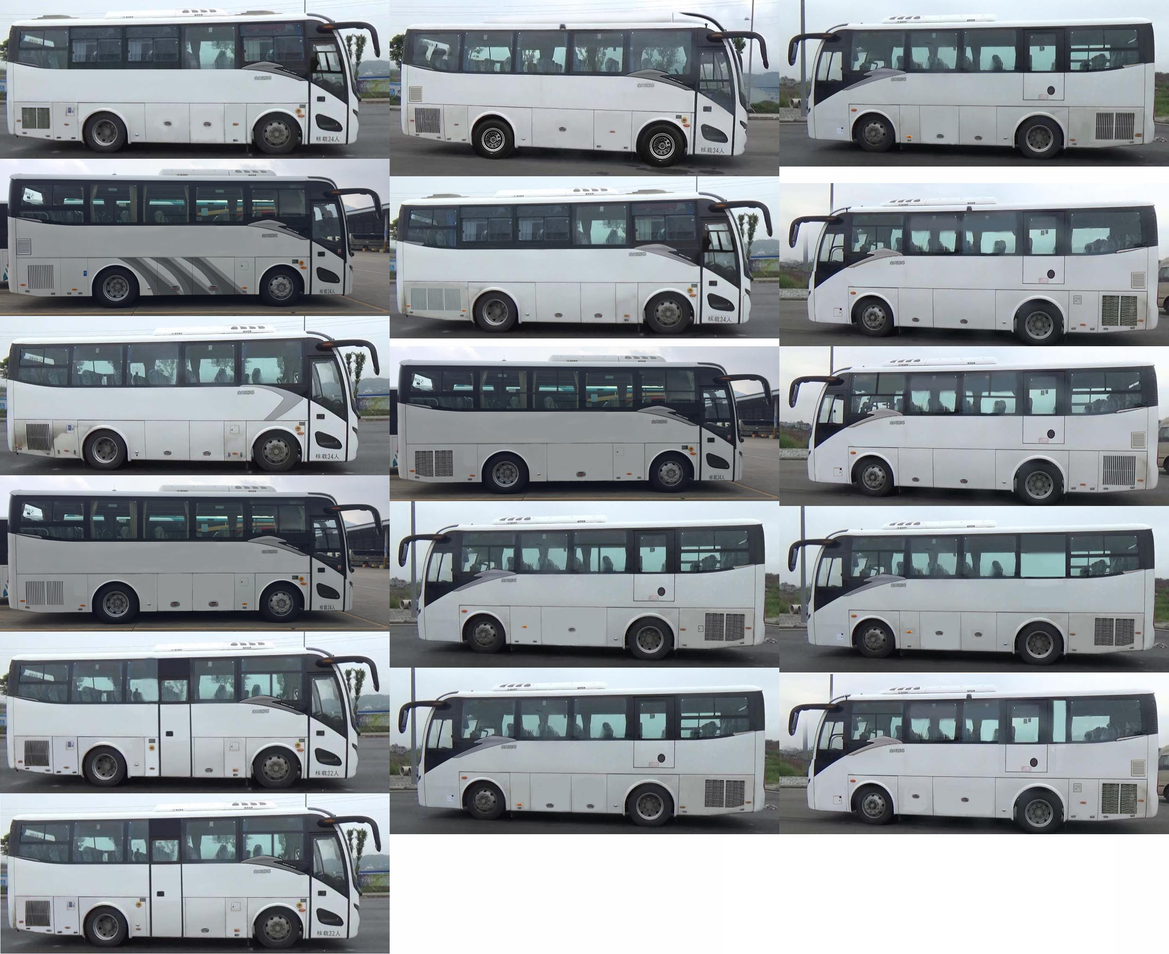 | 备注 | 1.安装外推式应急窗,可组合推拉式、封闭式、局部推拉式侧窗,前乘客门选装推拉窗,选装侧围电子显示屏,选装发动机后舱门散热孔,顶排气口可选装在后顶部左侧或右侧,取消中开门左侧设置应急门(额定载客人数:24-34);2.选装前顶部及两侧空调挡板(车高3375mm),可取消顶置空调(至安全顶窗车高3340mm);3.选高配置时对应整备质量9200kg;4.安装带卫星定位功能的行驶记录仪;安装限速装置,限速100km/h;6.ABS系统控制器型号和厂家为:ABS-E 4S/4M/威伯科汽车控制系统(中国)有限公司;7.发动机最大净功率:155kW(YC4G220-50),157kW(WP5.220E51);油耗申报值(L/100km):19.0(YC4G220-50),19.0(WP5.220E51);8.可选装中门(左侧可选装应急门,额定载客人数:24-32);选装侧围后部舱门格栅结构. | ||