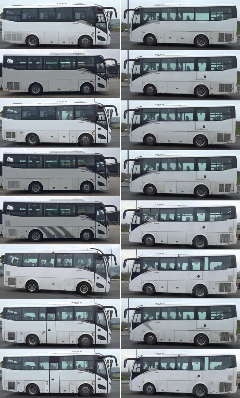 | 备注 | 1.安装外推式应急窗,可组合推拉式、封闭式、局部推拉式侧窗,选装发动机后舱门散热孔,进气口可选装在后顶部左侧或右侧;2.选装前顶部及两侧空调挡板引起高度变化,可取消顶置空调(至安全顶窗车高3270mm);3.可选装中门(座位数为24-34,左侧可选装应急门或无应急门);可取消中开门(座位数为24-36,左侧设置应急门);4.选高配置时对应整备质量8800kg;5.安装带卫星定位功能的行驶记录仪;安装限速装置,限速100km/h;6.ABS系统控制器型号和厂家为:ABS-E 4S/4M/威伯科汽车控制系统(中国)有限公司;7.发动机最大净功率:165kW(YCK05230-60),158kW(WP4.6NQ220E61).油耗申报值(L/100km):19.1(YCK05230-60),19.1(WP4.6NQ220E61);选装侧围后部舱门格栅结构. | ||
