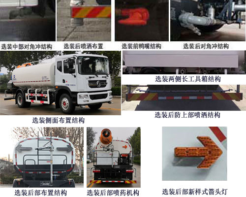 | 备注 | 1、罐体有效容积:10立方米,罐体外形尺寸(长×宽×高)(mm): 4800×2200×1400;2、防护装置所用材料材质为:Q235,侧、后下部防护装置连接方式均为螺栓连接,后下部防护装置的断面尺寸为(mm):100×50,离地高度为475mm;3、随底盘,ABS系统生产厂家,型号:焦作博瑞克控制技术有限公司,J ABS;4、该车仅采用4500mm、3950mm轴距,选装轴距时长度、前悬、后悬、轴距及后伸对应关系为:8290=1230+2560+4500+0,7928=1230+2560+3950+188,7740=1230+2560+3950+0,7650=1230+2470+3950,选用3950mm轴距时,整备质量为7100kg,额定载质量为8700kg,罐体有效容积为:9.6立方米,罐体外形尺寸(长×宽×高)(mm):4200×2250×1500;5、选用3950mm轴距,选装后部喷药机构时,长度为7928mm,不选装后部喷药机构时,长度为7740mm或7650mm;6、选装不安装后部箭头指示灯;7、选装挡泥板结构;8、选装后部喷药机构;9、选装两侧长工具箱结构;10、选装后防上部喷洒结构;11、选装后部布置结构;12、选装前鸭嘴结构;13、选装中部对角冲结构;14、选装后对角冲结构;15、选装后喷洒布置;16、选装后下部防护装置断面尺寸为(mm):150×50,最大离地高度为500mm;17、选装后部新样式箭头灯;18、选装侧面布置结构. | ||
