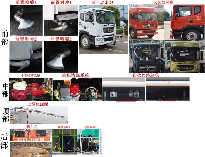 | 备注 | 该车选用3950mm底盘轴距;该车装有水罐、水路系统、作业平台、控制系统,用于洒水,清洗作业;罐体外形尺寸(长轴×短轴×长度)(mm):2400×1420×4200.罐体有效容积10.2立方米.选装前置自动水炮,前伸935mm,整车长8415mm,侧防护装置材料为Q235A,连接方式为螺栓连接;后防护装置材料为Q345A,与车辆连接方式为螺栓连接;后部防护装置的断面尺寸为240×65mm,离地高度为470mm;该车可选装鸭嘴,对冲,小型喷洒系统,高压清洗系统,自吸管路总成,上绿化浇灌,后作业指示灯(箭头灯),卷盘;该系列选装对于整车尺寸,重量变化可忽略不计;随底盘选装驾驶室外观;随底盘装有ABS,ABS系统生产厂家,型号:焦作博瑞克控制技术有限公司,J ABS. | ||