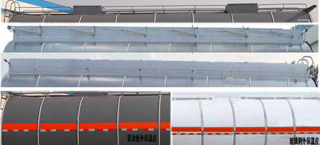 | 备注 | 采用适用于牵引危险品运输半挂车的牵引车.危险货物运输车辆的车辆类型为AT型车辆.介质类项号:6.1;罐体有效容积:36立方米;保温层内部罐体尺寸(长×直径):12520×2050mm;保温层厚度为50mm时,罐体(含保温层,长×直径)尺寸为12620×2150mm;保温层厚度为80mm时,罐体(含保温层,长×直径)尺寸为12680×2210mm;保温层厚度为100mm时,罐体(含保温层,长×直径)尺寸为12720×2250mm. 选装罐顶护栏样式,外保温皮可选用彩涂板、玻璃钢; ABS系统生产企业:广州瑞立科密汽车电子股份有限公司,型号:CM2XL-4S/2M.侧后防护装置材料均为铝合金5083,侧后防护装置均采用螺栓连接;后防护下沿距地面高为490mm,断面尺寸为140mm×60mm.选装轻型行走机构时整备质量7000kg,对应额定载质量33000kg. | ||