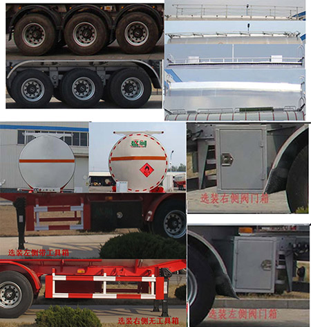 备注 | 仅可运输液态硫磺;罐体有效容积19.3立方米,罐体外型尺寸(长×直径)mm:9300×2100(保温层厚度150mm);ABS生产厂家:广州瑞立科密汽车电子股份有限公司,威伯科汽车控制系统(中国)有限公司,克诺尔商用车系统企业管理(上海)有限公司;ABS系统控制器型号:CM2XL-4S/2K(4S/2M),4005000810,K068353XXX ;侧面及后下部防护装置所用材料:Q235;侧防护连接方式:螺栓连接,后防护连接方式:焊接,后部防护装置的断面尺寸为120×68mm,离地高度为500mm;选装罐顶升降护栏,选装轮罩样式;采用适用于牵引危险品运输半挂车的牵引车;危险货物类项号为:4.1.顶部可为挡水槽式也可为走台式;选装爬梯的安装个数和位置;工具箱左右侧可选装;选装罐盖个数及位置;选装阀门箱位置及个数.选装轻型行走机构时车辆整备质量为9000kg,对应的额定载质量为31000kg.运送危险货物车辆的类型为AT.选装空气悬架.选装后尾工具箱样式.选装车身侧面和正面企业logo. |