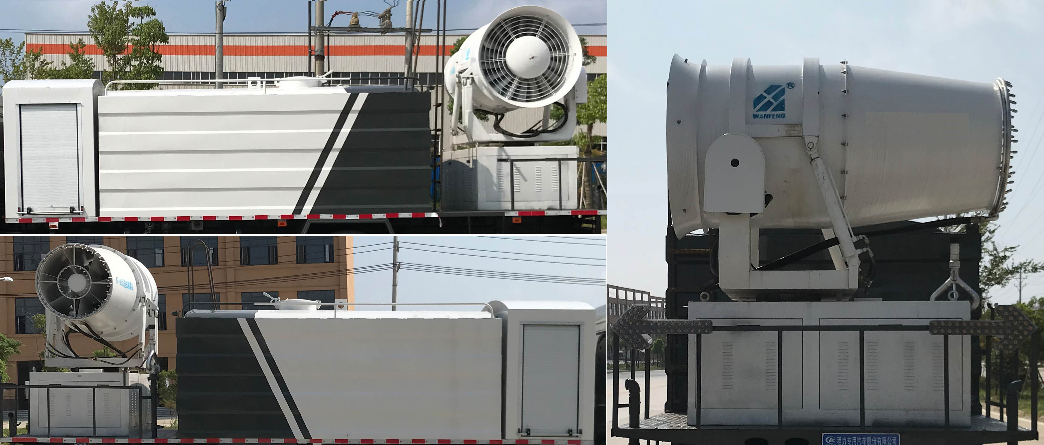 备注 | 专用装置为抑尘雾炮,用于城市抑尘。整车长/轴距/后悬对应关系为(mm):7770/3950/2560;8680/4500/2920;8680/4700/2720;8980/5000/2720;9280/5300/2720;9580/5600/2720防护材料:Q235B碳钢,连接方式:左右侧面采用焊接连接。后下部防护采用螺栓连接,后部防护断面尺寸(mm):120×50,后部防护离地高度(mm):490。ABS系统生产厂家,型号 :焦作博瑞克控制技术有限公司,J ABS。选装雾炮型号:WF-60/WF-80/WF-100所对应的整备质量分别为:9400kg/10400kg/11000kg。选装外形图片。 |