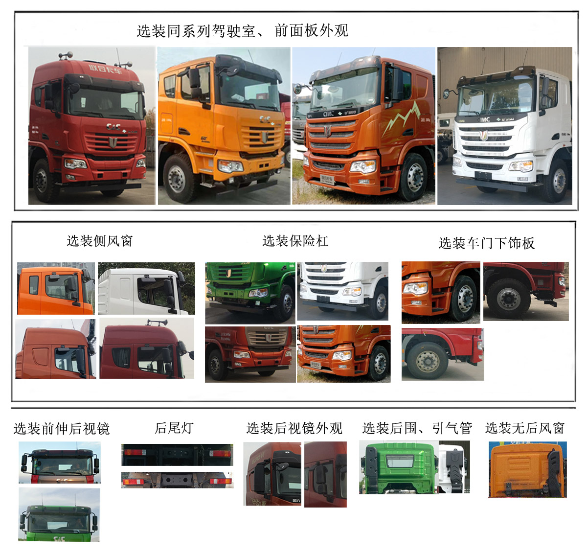 备注 | 随底盘选装同系列驾驶室(整车高度有3650mm和3560mm两种),前面板,侧风窗,保险杠,车门下饰板,无后风窗,后尾灯,前伸及新外框后视镜,双天线,后围引气管,单根静电拖地带;选装不同结构货箱,多种环保顶盖及环保篷布盖.发动机/净功率(KW)对应关系为:YCK11400N-60/289,YCK11380N-60/275.货箱自卸方式为后卸.侧面及后下部防护装置所用材料为Q235,侧防护连接方式为螺栓连接,后防护连接方式为螺栓连接.后部防护装置的断面尺寸为120×50mm,下边缘的最大离地高度为480mm.整车长/货箱长/轴距/后悬对应关系:8492/5400/3825+1350/1802,8492/5600/3825+1350/1802,8592/5800/3825+1350/1902,8067/5200/3600+1350/1602,8167/5400/3600+1350/1702,8945/6000/4200+1350/1880,9145/6200/4200+1350/2080,9255/6300/4500+1350/1890,9355/6500/4500+1350/1990.ABS生产厂(型号)为:浙江万安科技股份有限公司(VIE ABS-Ⅱ).安装具有卫星定位功能的行驶记录仪. |