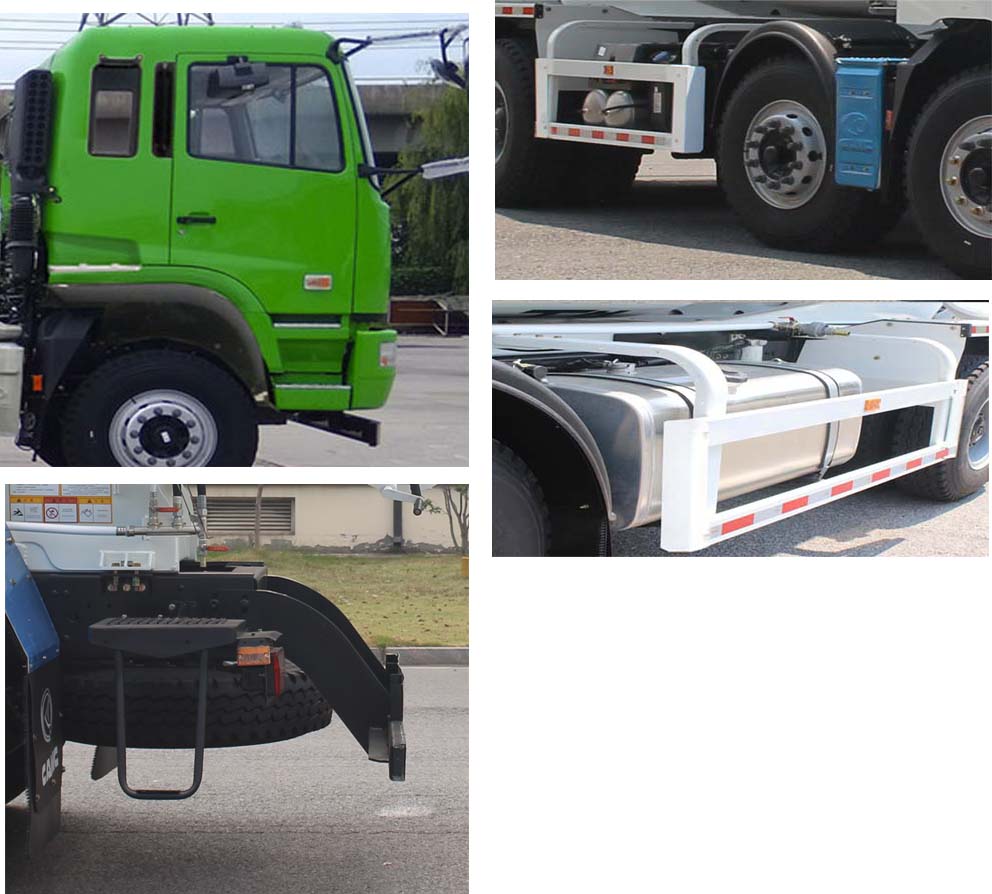 | 备注 | 1.搅动容量为7.7立方米,罐体总长5060mm,最大宽处直径2320mm,罐体安装角度13.9°。2.侧面,后下部防护装置的材料均为:Q235钢板,连接方式均为:螺栓连接;后下部防护装置断面尺寸为:50mm×120mm,离地高度为490mm。3.随底盘选装驾驶室,选装尾部状态,选装后处理、电瓶框、油箱等位置,选装后防护支撑样式,选装备胎安装位置。4.应装具有卫星定位功能的行驶记录仪。5.ABS型号:CM4XL-4S/4M,广州瑞立科密汽车电子股份有限公司。6.该车采用的CM6D10.350 50和CM6D18.345 50发动机的油耗值为42.8L/100km。 | ||