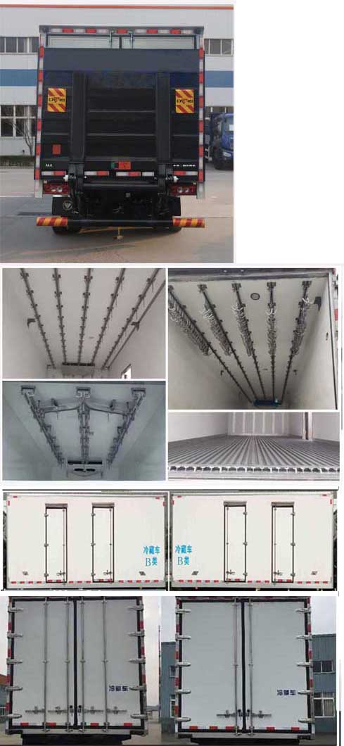 | 备注 | 1.货厢顶部封闭,不可开启;2.可选装单排驾驶室型式,可选装同等功率制冷机组,可选装导流罩,可选装左/右两侧单/双侧开门,选装无侧开门货厢风格,选装后部三开门,可选装液压尾板,液压尾板收起状态下水平长度为295mm;3.侧面防护装置材料为冷板B-2.0,后下部防护装置材料为管Q345A,后部防护装置截面尺寸120mm×70mm,均为螺栓连接.后下防护装置离地高度480mm,选装液压尾板时,后防护材质为圆管Q345A,为螺栓连接,后部防护装置截面尺寸直径为120mm,离地高度400mm;4.ABS系统型号:ABS-E;生产企业:威伯科汽车控制系统(中国)有限公司.ABS-VI.E;生产企业:广州瑞立科密汽车电子股份有限公司.5.发动机WP4.1NQ170E61,F3.8NS6B170对应发动机油耗值为17.8,18.2. | ||