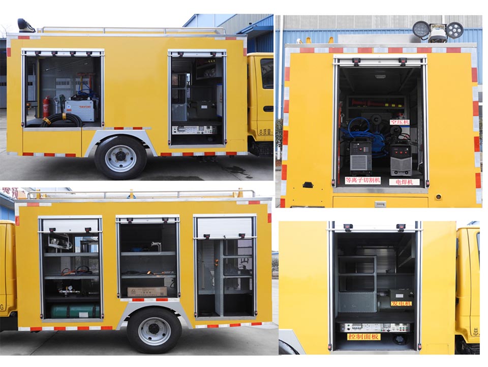 | 备注 | 1.该车辆专用装置为柴油发电机组;可选装等离子切割机、电焊机等工程应急救险常用工具,主要应用于油田、市政、电力、燃气、供水等应急救险。2.该车驾驶室与厢体分离,厢体顶部密闭,不可开启。3.该车侧、后防护均采用裙边结构;侧、后防护材质为Q235,后防护内部加固,后裙边离地高度490mm。4.可选装升降照明灯具。5.ABS型号:APG3550500A4,生产厂:浙江亚太机电股份有限公司。发动机最大净功率为94KW | ||