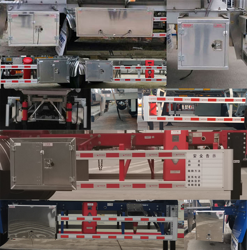 | 备注 | 罐体有效容积为49立方米.罐体外形尺寸(长×宽×高)(mm):11830×2540×1990(前)/2140(后).运输车辆类型为FL,类项号:3.顶部结构,挡泥板,灯支架,多种胶管箱,选装前后爬梯结构,选装灭火器位置,选装工具箱位置,选装接线盒位置.ABS生产厂为威伯科汽车控制系统(中国)有限公司,型号为:4005000810;广州瑞立科密汽车电子股份有限公司,型号为CM2XL-4S/2M;克诺尔商用车系统企业管理(上海)有限公司,型号为K068353XXX;EBS生产厂为克诺尔商用车系统企业管理(上海)有限公司,型号为K11061XVXX.侧、后防护材质均为铝合金,连接方式均为螺栓连接式,后防护离地高度为480mm,后部防护装置的断面尺寸(mm):150×60.牵引车采用适用于牵引危险品运输半挂车的牵引车. | ||