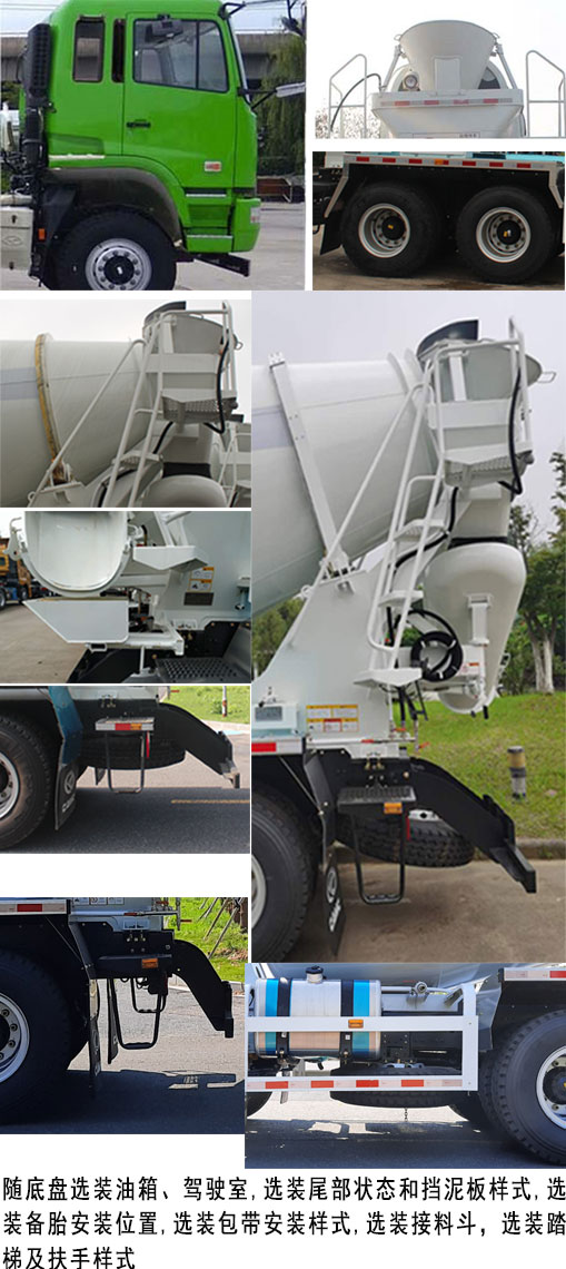 | 备注 | 1.搅动容量为7.7立方米,罐体总长5320mm,最大宽处直径2200mm,罐体安装角度14°。2.侧面,后下部防护装置的材料均为:Q235钢板,连接方式均为:螺栓连接;后下部防护装置断面尺为:50mm×120mm,离地高度为490mm。3.随底盘选装驾驶室,选装尾部状态,选装后处理、电瓶框、油箱等位置,选装后防护支撑样式,选装备胎安装位置。4.应装具有卫星定位功能的行驶记录仪。5.ABS型号:CM4XL-4S/4M,广州瑞立科密汽车电子股份有限公司。6.该车采用的CM6D18.345 50发动机的油耗值为42.8L/100km。 | ||