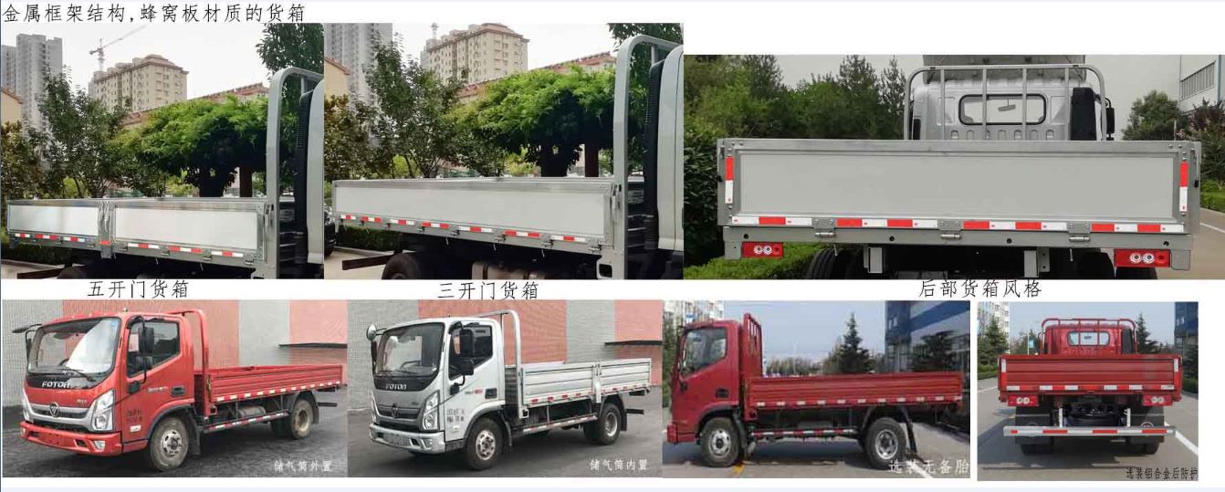 | 备注 | 1.选装排半驾驶室,可选装5开门,7开门货箱风格,选装横纹竖纹货箱风格,选装金属框架结构,蜂窝板材质的货箱,选装无备胎,选装储气筒内置,选装前围及前部灯具;2.ABS系统型号:ABS-E;生产企业:威伯科汽车控制系统(中国)有限公司.ABS-VI.E;生产企业:广州瑞立科密汽车电子股份有限公司.3.侧面防护装置材料为冷板B-2.0,后下部防护装置材料为管Q345A,选装铝合金后防护,后下部防护装置材料为AL6082-T6,后部防护装置截面尺寸均为100mm×50mm,均为螺栓连接.后下防护装置离地高度均为485mm; 4.发动机Q28-130E60,4J28TC6,F2.8NS6B131,Q28-130C60对应油耗值分别为11.0,11.3,11.1,11.3. | ||