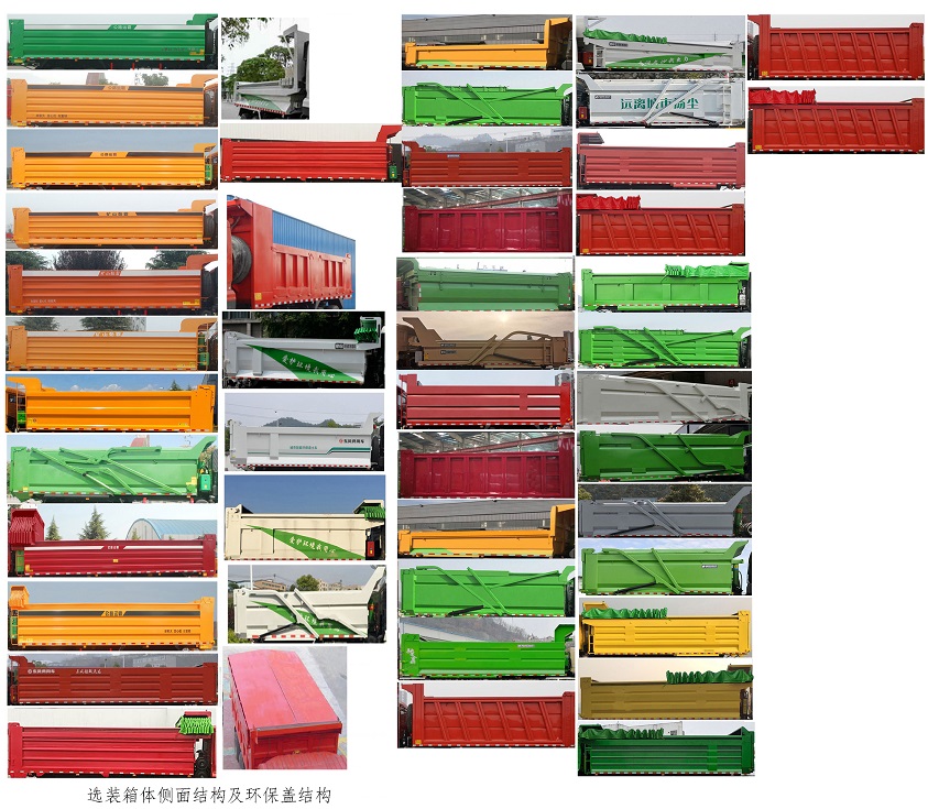| 备注 | 1、货厢倾卸方式为后卸式。2、随底盘选装驾驶室。3、防护装置所用的材料材质:Q235,防护装置连接方式:螺栓连接,后部防护装置的断面尺寸(长×宽)mm:120×60,离地高度:480mm。4、选装箱体侧面结构、货箱后部结构及环保盖结构。5、该车应装备有具有卫星定位功能的行驶记录仪。6、ABS型号/生产厂家:3631010-C2000/东科克诺尔商用车制动系统(十堰)有限公司。7、YCK09360-60发动机对应的油耗值为36.0L/100km;YCK09400-60发动机对应的油耗值为36.0L/100km。 | ||