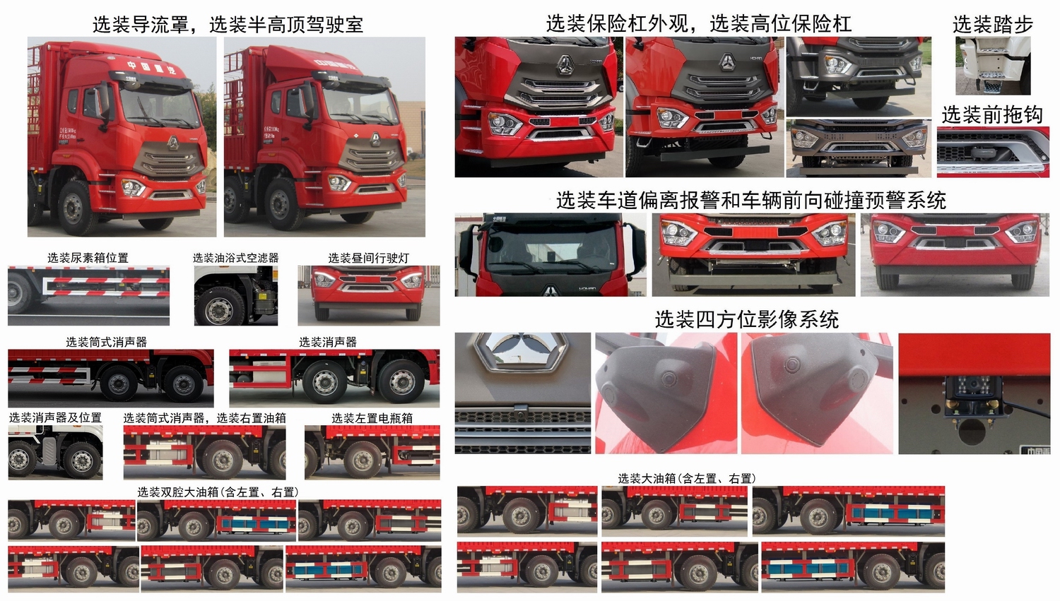 | 备注 | 该车选装半高顶或高顶驾驶室。可不选装导流罩。可不选装副保险杠和第三级上车踏板。选装昼间行驶灯。选装油浴式空滤器。驾驶室准乘人数与额定载质量参数一一对应。车长与前悬、轴距、后悬、货箱内长对应关系如下(单位:mm):9150=1550+1800+3500+2300,货箱内长6800;9330=1550+1800+3500+2480,货箱内长6800;9600=1550+1800+3800+2450,货箱内长7200;9720=1550+1800+3800+2570,货箱内长7200;10100=1550+1800+4300+2450,货箱内长7800;10320=1550+1800+4300+2670,货箱内长7800;10900=1550+1800+4800+2750,货箱内长8600;11120=1550+1800+4800+2970,货箱内长8600;12000=1550+1800+5600+3050,货箱内长9520或9600或9700。车箱底板到栅栏顶部高度为2500mm或2550mm或2600mm。该车装WP6H245E61、WP6H270E61发动机对应的油耗申报值为32.0L/100km。选装货箱外观结构。选装两层花栏、三层花栏。选装横瓦楞、竖瓦楞。选装紧绳器。选装工具箱。选装爬梯。选装车厢底板到顶部高度为2500或2550或2600mm。侧面防护装置所用材料材质为Q235A,连接方式为螺栓连接;后部防护装置所用材料材质为Q235A,连接方式为螺栓连接+焊接,断面尺寸为120mm×120mm,离地高度为480mm。ABS系统型号为446 004 6300,生产企业为威伯科汽车控制系统(中国)有限公司。该车可选装限速装置,限速89km/h。安装具有卫星定位功能的行驶记录仪。 | ||