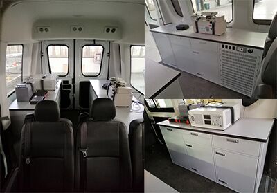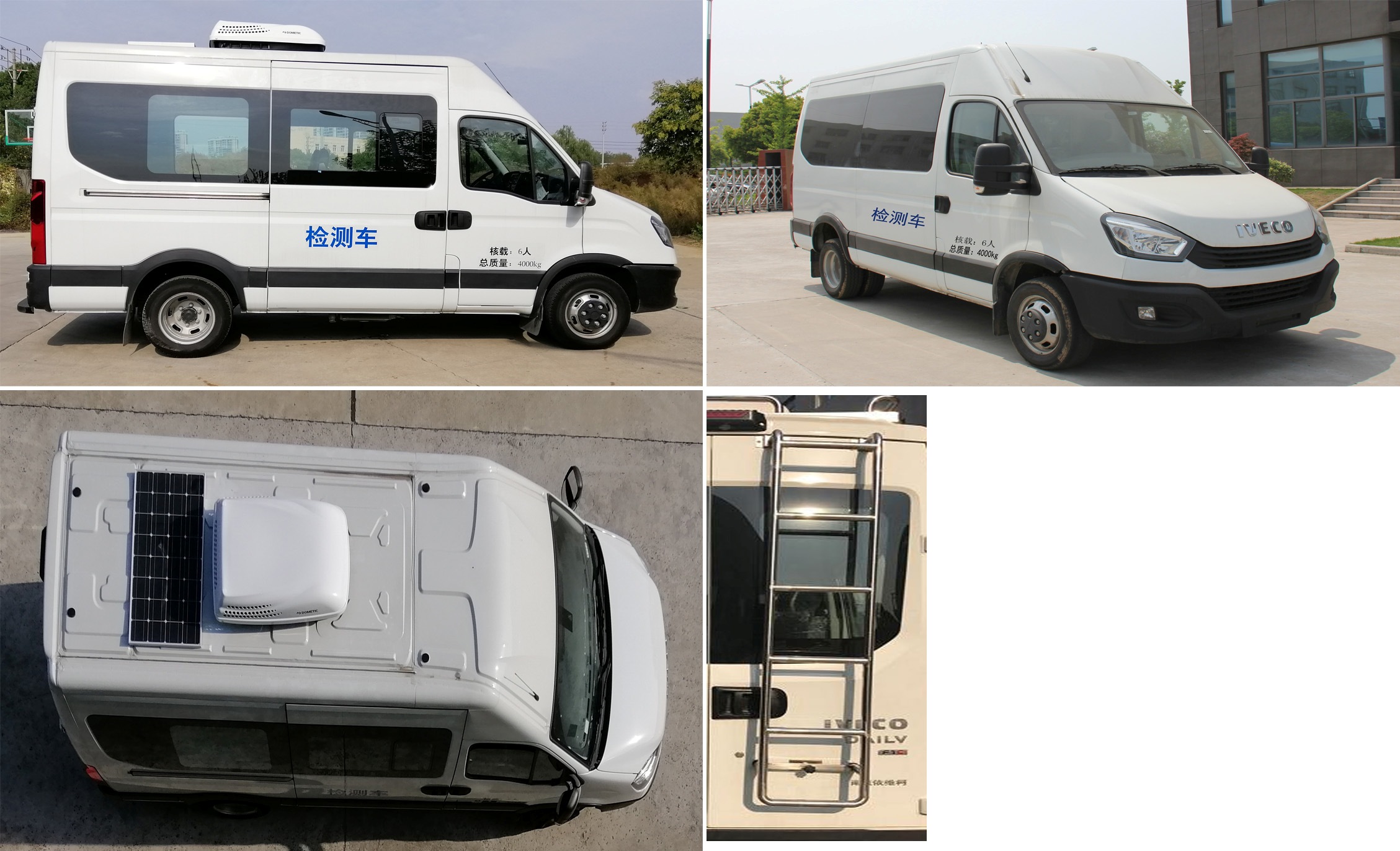 | 备注 | 装配有检测车专用工作台、工具柜、发电机、拉力试验机等设备,可选装顶部空调、太阳能电池板;可选装后爬梯;可选不装侧拉门。无选装时整车高度为2726mm;选装顶置空调时整车高度为2966mm.ABS系统控制器型号:BOSCH ABS9,ABS系统控制器生产企业:BOSCH公司。发动机型号为F1AE3481D,发动机最大净功率93kW。 | ||