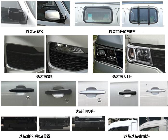 | 备注 | 1.选装(倒车影像,不带前雾灯状态,不同规格黑色外后视镜,不同规格门外把手,收放机/MP5,前探头,简易式/前后栏板式圆管/矩管仓栅);2.SWC15M发动机对应油耗值为7.1L/100km,最大净功率72kW;3.ABS系统控制器型号/生产企业:APG3550500G/浙江亚太机电股份有限公司.4.货厢底板距仓栅顶部高度1700mm. | ||