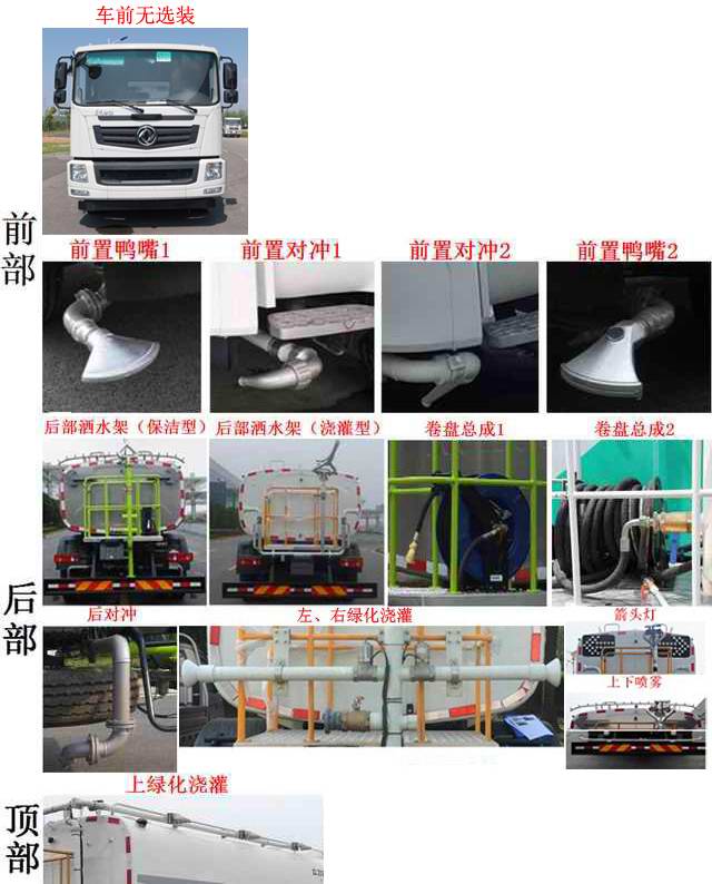 | 备注 | 该车选用底盘5000mm轴距,该车装有水罐、水路系统、清洗工作装置、作业平台、控制系统,用于清洗作业;罐体外形尺寸(长轴×短轴×长度)(mm):2230×1280×3780.罐体有效容积8.35立方米.配置前喷水架时,前伸950mm,整车长9250m;配置基本型(车前无选装)时,整车长8300m;该车可选装鸭嘴、对冲、后部洒水架(保洁型)、后部洒水架(浇灌型)、卷盘、左(右)绿化浇灌、后作业箭头灯、上下喷雾、上绿化浇灌,该系列选装对于整车尺寸、重量变化可忽略不计;侧防护装置为铝合金,连接方式为螺栓连接;后防护装置材料为Q345A,与车辆连接方式为螺栓连接;后部防护装置的断面尺寸为240×65mm,离地高度为420mm;该车技术阶段为"发展期",可在全国销售,电池种类/生产企业: 磷酸铁锂电池/宁德时代新能源科技股份有限公司;随底盘装有ABS,ABS型号/生产企业: CM4XL-4S/4M/广州瑞立科密汽车电子股份有限公司. | ||