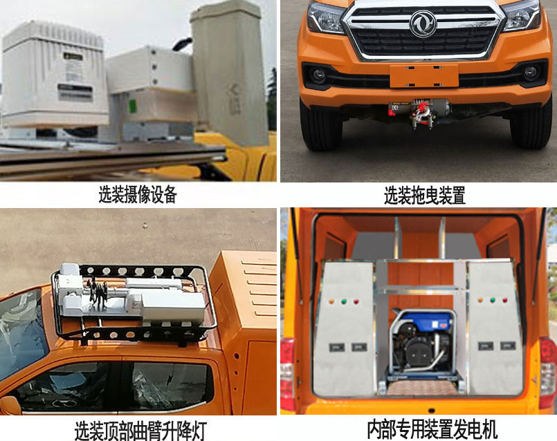 | 备注 | 随多用途货车底盘选装不同样式轮毂、后泊车雷达。选装不同规格前照灯。选装昼间行车灯、雨眉、前泊车雷达。选装行李架。仅选用5290mm长度底盘。车辆前端选装拖曳装置时车长5390mm,前悬1010mm。产品配置发电机,用于提供应急电源;配置抢修工具机构,用于安装抢修工具;选装摄像设备,车高2140mm;选装车顶曲臂照明灯,车高2100mm。车厢两侧前部选装不同样式的装饰孔。ABS型号:ESP9;ABS生产厂:博世汽车部件(苏州)有限公司;发动机最大净功率为105kW。 | ||